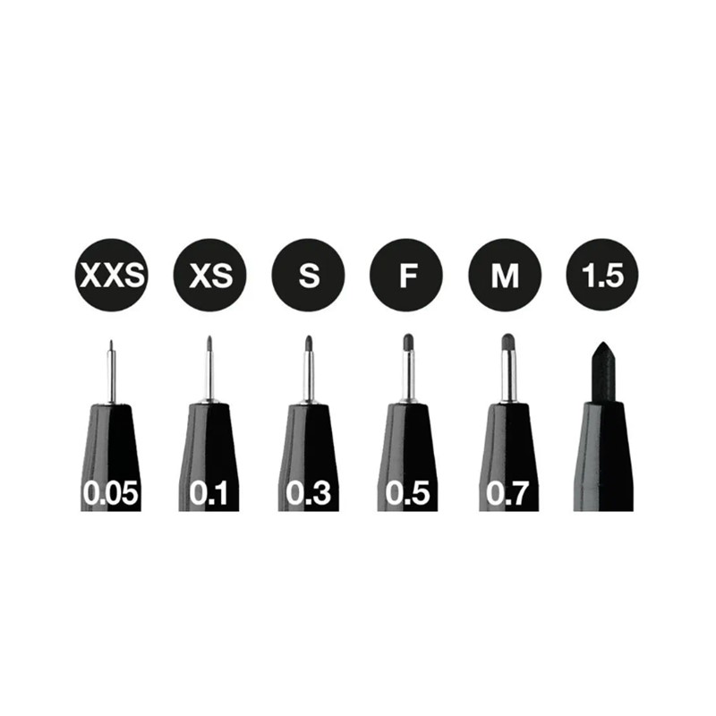 Contenido: XXS = 0,05 mm, XS = 0,1 mm, S = 0,3 mm, F = 0,5 mm, M = 0,7 mm, 1,5 mm